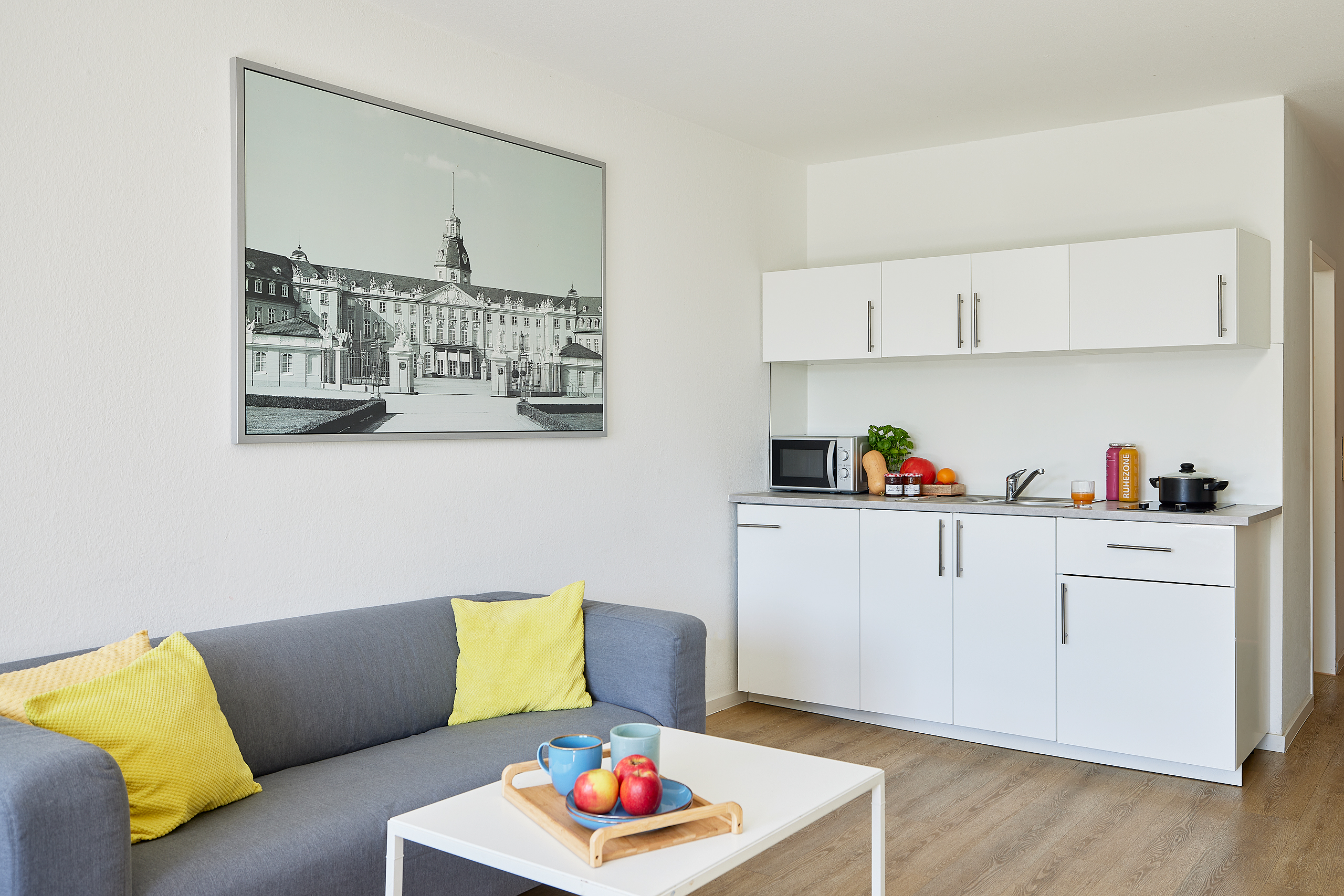 Our Apartment House Classic East is centrally located in the city center east on Mendelssohnplatz, in the immediate vicinity of the Karlsruhe Institute of Technology (KIT). The apartments are 30-35 square meters in size and all face a quiet courtyard.